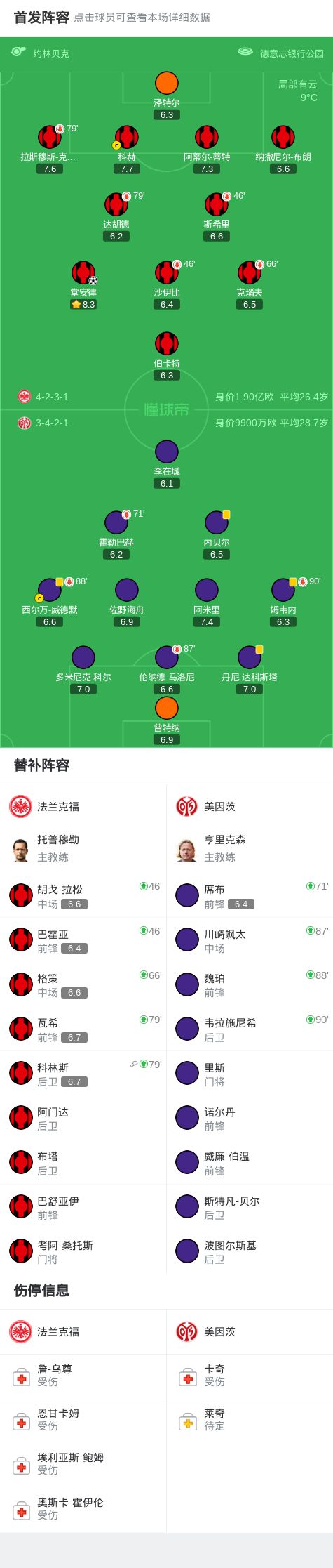 - 法兰克福vs美因茨:堂安律、达胡德首发,李在城、阿米里出战