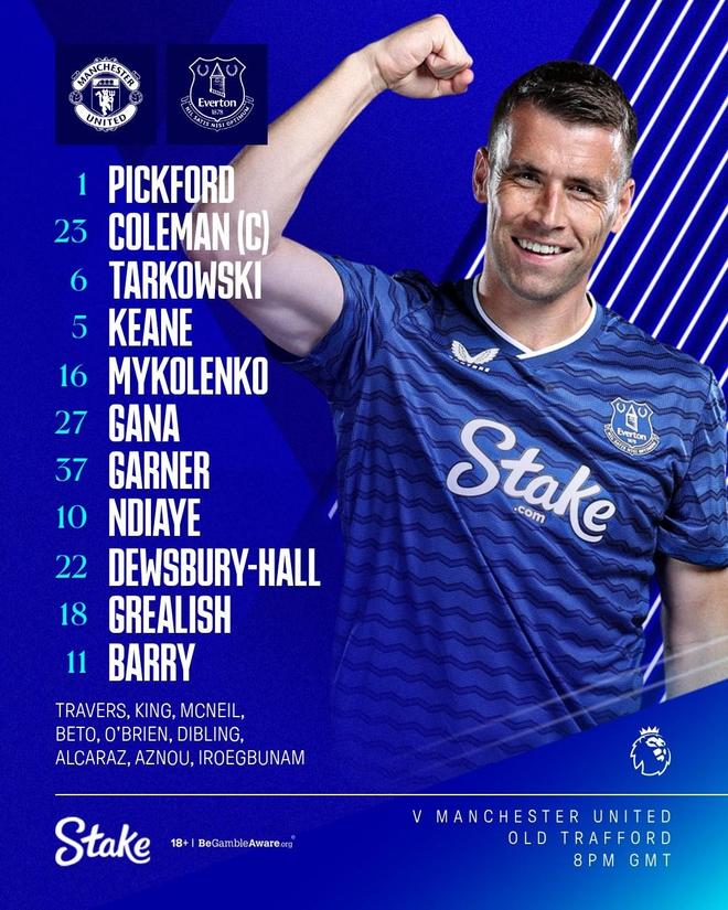 埃弗顿首发:1-皮克福德、23-科尔曼、6-塔尔科夫斯基、5-迈克尔-基恩、16-米科连科、37-詹姆斯-加纳、27-伊德里萨-盖伊、10-恩迪亚耶、22-霍尔、18-格拉利什、11-蒂尔诺-巴里